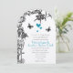 English Cottagecore Esthetic Butterfly Blue Hearts Art Deco Christian Fairy Tale Wedding Invitation.
