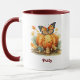 Enjoy your favourite beverage in this charming personalised Autumn mug! A cute pumpkin and butterfly design sets the vibe for a cosy Fall morning or evening where you can sit a relax with your morning coffee or tea. This mug can be personalised to include your name or the name of a special person to give to as the perfect gift.