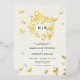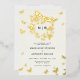 A modern, stylish, romantic wedding invitation template with a butterfly theme featuring an eucalyptus wreath and hand painted, watercolor butterflies in gold and a sprinkle of gold (real foil) over an ivory background. Romantic and elegant, stylish and chic, it will appeal to the modern bride and groom who want a refined but relaxed atmosphere, perhaps in the countryside, in a garden or other place where nature plays an important role.
