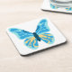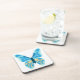 This set of coasters is decorated with a sweet butterfly graphic in hues inspired by the beach. This unique image may be edited to change all of the colours to suit your style.