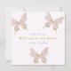 Pretty pink butterfly dama proposal card features "will you be my dama" text on a blush pink background, and surrounded by beautiful butterflies. This dama proposal has a one photo back of the card. Shop this collection for coordinating quinceanera invitations.
