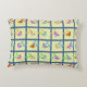 Butterfly designed pillow with pretty butterflies and flowers with a pale yellow background, mixed coloured butterflies, flowers, and teal squares.