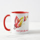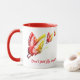 This bright, colourful mug has a red and yellow butterfly reaching for the sky against a white background, and a motivational saying: Don't just fly, soar!