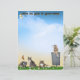 A colorful sky stationery with some butterflies, cats, a baby raccoon, a mailbox and a dragonfly on the front. On the back more cats, and bees.