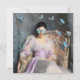 Vintage painting remix of a woman wearing a vintage white dress with pastel blue butterflies.