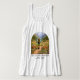 Not all who wander are lost features a whimsical illustration with a butterfly winged fairy hiking a mountain trail, surrounded by colorful wildflowers and red toadstool mushrooms. The storybook-style art and text capture a love for nature, adventure, and magical daydreams. This scoop neck tank top is made for those who love fairycore style, cottagecore art, and fairytale designs that feel nostalgic and magical. Add a touch of fairytale trail magic to your outfit with this unique wearable art.