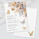 The design features a delicate arrangement of watercolor wildflowers in a warm and modern mix of yellow, orange, tan, blush pink, and black, creating a soft and inviting autumn-inspired look. Butterflies in gentle yellow and grey tones flutter gracefully across the front, adding a subtle and magical touch.