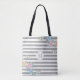 Butterfly Floral Striped Monogram Grey Tote Bag