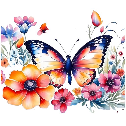 A pretty butterfly surrounded by pink, blue, orange and purple flowers watercolor illustration girl's baby shower personalised Mimi to be button.