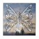 Butterfly being released by two hands decorated with tendrils, little black hearts floating.
