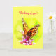 This friendship card is a colourful celebration of life! A gold, orange, brown and white American Lady Butterfly is perched on a lovely magenta verbena blossom. The luminous background just glows with light. More butterflies are scattered inside. You can customise the text to suit your needs.