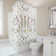 Infuse your bathroom with the serene beauty of nature with our Butterfly and Bumblebee Garden Shower Curtain. Designed by Jenn Steffen for Studio Posies, this captivating piece features graceful butterflies in shades of gold, pink, and mauve, delicately landing on blooming tulips, while bumblebees buzz around the pollinating flowers. The soft, muted colours of greens, greys, golds, pinks, and mauves create a tranquil and elegant ambiance, perfect for any bathroom setting.