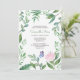 VG Invites butterfly baby shower invitation features lush greenery and pretty pink roses that frames your party details. A complimentary green colour adorns the back of your invitation. A rustic yet sophisticated choice for spring, summer, fall and winter baby showers. Designed by Victoria. To see more visit www.zazzle.com/vginvites