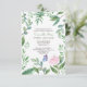 VG Invites butterfly baby shower invitation features lush greenery and pretty pink roses that frames your party details. A complimentary green colour adorns the back of your invitation. A rustic yet sophisticated choice for spring, summer, fall and winter baby showers. Designed by Victoria. To see more visit www.zazzle.com/vginvites