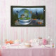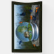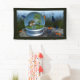 Inside a "snow globe" is a summer landscape with a cottage overshadowed by maple and cherry trees. The surrounding grassy field is filled with lilies and wildflowers in bright colours. Roses and ivy climb the wall of the little house. It's a late summer day, and a thousand bright orange and blue butterflies swirl around the globe.