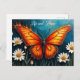 Butterfly in flames fantasy white chamomile art postcard