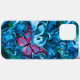 Personalise this Unique "One of a Kind" Butterfly iPhone Case! It Features a Pink, Blue and Black Butterfly Flying Among Beautiful Light and Dark Blue Flowers!