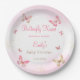 Butterfly Kisses and Baby Wishes Pink Baby Shower Paper Plate