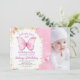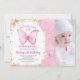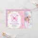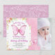Sweet butterfly themed birthday invitation featuring two lovely watercolor pink floral arrangements, two light faux rose gold glitter and watercolor butterflies and your little girl's photo. This sweet butterfly birthday invitation design is cute way to invite guests to your little girls butterfly themed birthday party and can be used for any age.
