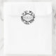 The sticker is made on wonderful paper and had no problem sticking to the bag that I purchased to put it on. I wanted to find a design that would be cute for the bride and groom and this one fit the bill as it has cute "bees" buzzing around and the wedding was taking place in a town called "Bee Cave". The packaging was great and protected the stickers. The website is easy to navigate and there are so many color choices. I had no problem finding a color that the bride was using on everything else selected. The design was adorable and there were many to choose from. You can make the figure as larger or smaller and you can place the photo and writting whereever you want to in the sticker. The printing is fabulous..better than expected.