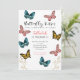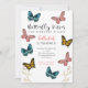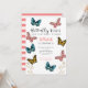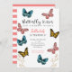 Cute butterfly theme birthday party invitation featuring an illustration of colorful butterflies with faux gold foliage at the bottom. The text at the top says "Butterfly Kisses and birthday wishes." Perfect for a girl's whimsical birthday party!