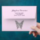 Adorable, elegant, whimsical, dreamy Butterfly kisses glitter silver pink envelope for Baby Shower invitations with return address at the top flap.
