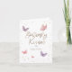 Butterfly Kisses thank you card featuring fluttering purple and pink butterflies and gold dots.