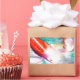 With an original art design by artist Sacha Grossel from a watercolour painting of two Butterfly Koi ornamental fish swimming in a serene pond. The fish are orange, blue and purple and the background water colour is turquoise. This original Oriental, Japanese art design is completely unique and one of a kind.