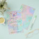 The holographic details are simulated in the artwork. There will be no actual holographic shine effects when printed.