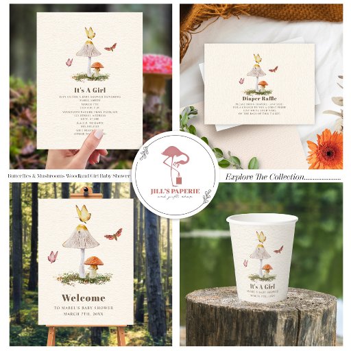Butterfly Mushroom Woodland Nature Baby Shower Invitation