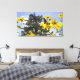 Butterfly N Sunflowers with a backdrop of spruce n sky on wrapped canvas