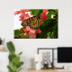 Butterfly on Red Flowers Poster