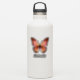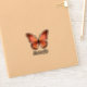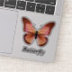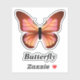 This decorative sticker features a graphic butterfly in orange and pink hues with a black body along with template text that is easy to personalise.