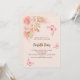 For a modern boho style baby shower. A peach background. Decorated with rose gold and pink florals, roses, pampas grass and butterflies. Personalise and add a name and party details.