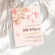 A peach background. Decorated with rose gold and pink florals, roses, pampas grass and butterflies. Personalise and add your name and details details.