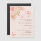 A peach background. Decorated with rose gold and pink florals, roses, pampas grass and butterflies. Personalise and add your names and details details.