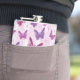 Seamless pattern of flying butterflies in shades of pinks and purples with white flowers over pale pink background. © and ® Bigstock® - All Rights Reserved.