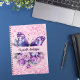 A girly pink background decorated with a purple butterfly, pink and purple flowers, pink confetti. Personalise and add your name.