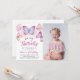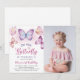 Butterfly Pink Purple Girls Birthday Photo Invitation