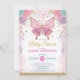 Celebrate the upcoming arrival of your sweet baby girl with this whimsical invitation featuring a pretty butterfly, pink, purple, teal & gold flowers and magical cotton candy clouds