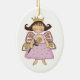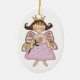 Adorable oval ornament with lovely country primitive artwork of a butterfly Princess holding a flower. Great Christmas tree ornament everyone will enjoy. Start a collection of all our special little winged girl ornaments.