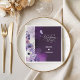 Elegant purple floral wedding napkins featuring soft watercolor flowers in lavender, blush, and white, accented with delicate botanical line art and a graceful butterfly. The rich plum background creates a romantic and sophisticated look, making these napkins a beautiful choice for wedding receptions, cake tables, cocktail bars, dessert displays, and bridal events. Perfect for couples creating a coordinated floral wedding décor and stationery suite.