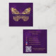 Elevate your brand with our elegant deep purple business cards featuring a stunning gold butterfly design. The purple colour is uneven. Perfect for female entrepreneurs, makeup artists, beauty salons, designers, and independent artists. Each card includes a QR code generator, creating a unique code linking to your website or social media. Facebook and Instagram icons.