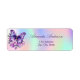 A purple butterfly decorated with pink and purple flowers, roses. A holographic background in pink, purple mint green. Personalise and add your name and address.