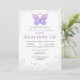 Una invitación para la Quinceañera simple y elegante. Presentando una mariposa lila con corona de plata rodeada con un borde de jardín que permitirá que sus invitados fácilmente encuentren toda la información necesaria para su gran evento. Los números Romanos "XV" representan las 15 primaveras de su cumpleañera. El lado trasero es el lugar perfecto para subir una foto de la bella Quinceañera.