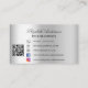 Back: Faux silver looking background. Templates for Your name, title, phone number, mail and website address, QR-code. Facebook and Instagram icons.