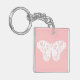 Butterfly sketch, shell pink and white key ring