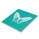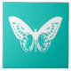 Digital sketch of a butterfly, adapted from a vintage illustration and digitally coloured - white on a deep turquoise blue / peacock background