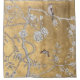 Sweet, delicate & oriental. A pale silvery botanical garden scene upon a shimmering gold background in an Asian tea garden. A butterfly flutters as a sparrow looks on from a branch in the orchard. This design will take you back to an idyllic time and place where you can feel serene, perhaps with a cup of Chinese tea.
