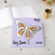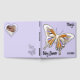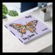Discover the ultimate keepsake for your after delivery baby shower, a personalised guest book that radiates luxury and charm. The front cover displays a cute butterfly in a sweet trendy palette of purple and orange surrounded with bright silver on a sweet Lilac background. the Baby’s name is written in an elegant serif font, complemented by "Baby Shower" in an exquisite script in real foil.